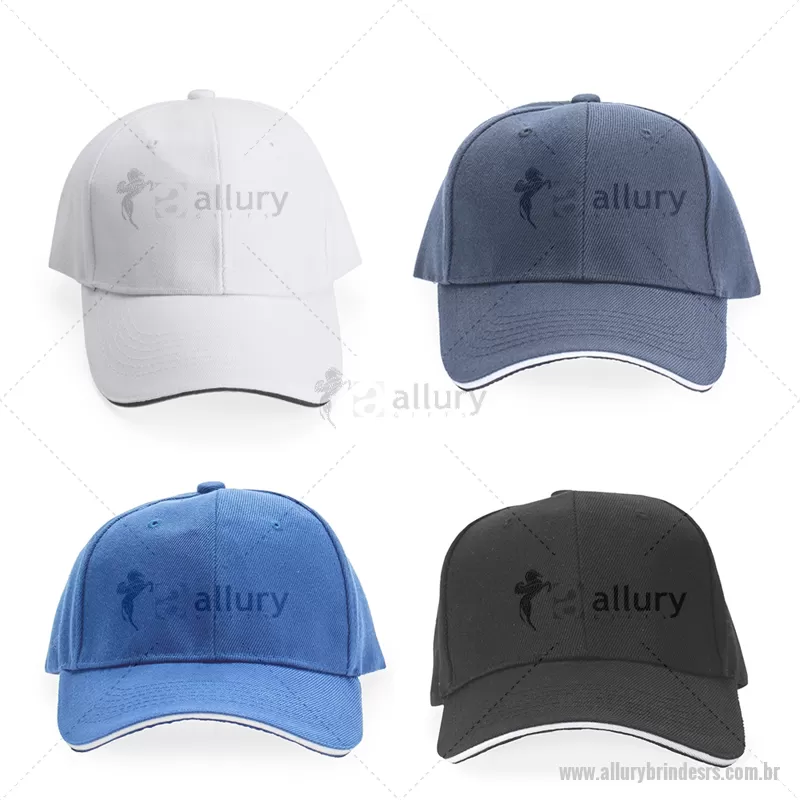 Boné Poliéster Aba Curva Descrição: Boné confeccionado em poliéster resistente a respingos dágua e com aba curva. Em tamanho único, ele é ajustável por meio de suas faixas de velcro na parte de trás. Altura : 13 cm x Largura : Aba: 18 cm Profundidade : Aba: 7 cm x Circunferência : 55,5 cm Peso aproximado (g): 73 - - ALLRSBON010