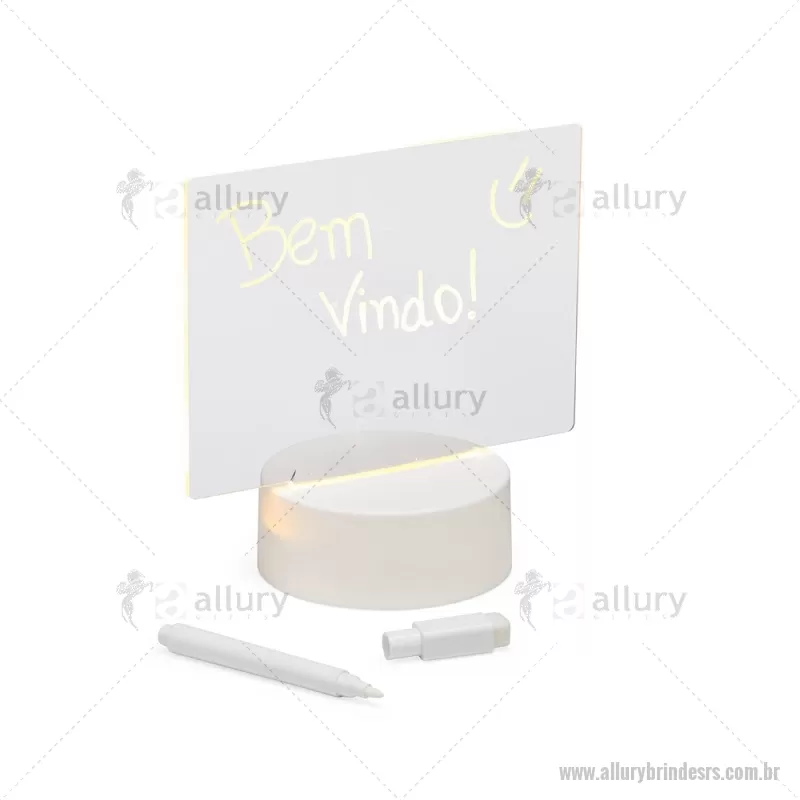 Luminária de Mesa Led Deixe qualquer espaço mais aconchegante e repleto de recadinhos incríveis com a nossa luminária. Com sua tela acrílica 3D, é possível soltar a criatividade e deixar mensagens inspiradoras, lembretes importantes ou até desenhos fofos, tudo de um jeito prático e super divertido! Com um funcionamento super simples, ela se conecta com cabo via USB integrado à base plástica ou por meio de 3 pilhas AAA (1.5V) não inclusas. Além disso, acompanha uma caneta plástica com apagador integrado, tornando a experiência ainda mais interativa e funcional. Essa luminária é perfeita para iluminar o ambiente e deixar recadinhos incríveis do seu jeito! Altura : 15,3 cm x Largura : 15 cm x Profundidade : 8,6 cm Tamanho total aproximado (CxL): Caneta: 11,2 cm x 1,2 cm Peso aproximado (g): 128 - - ALLRSLL031
